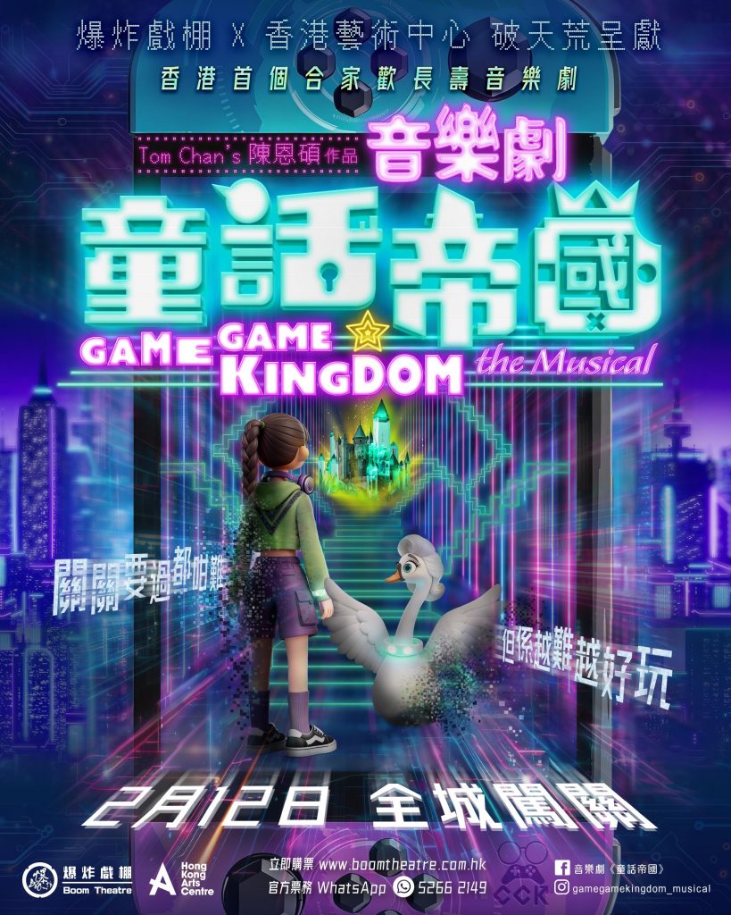 由音樂劇鬼才Tom陳恩碩一手包辦作曲、填詞、編劇、導演及監製的《童話帝國》,是全港首部常駐香港藝術中心麥高利小劇場的長壽合家歡音樂劇。故事講述立志成為電子遊戲設計師的童童,喜愛深入研究不同遊戲,不過母親卻把它視為不切實際的娛樂。著名遊戲開發商Game Game Kingdom創辦人Kingsley宣佈即將推出全新電子遊戲《童話帝國》,玩家可以走進遊戲中享受沉浸式體驗。家境貧窮的童童無法負擔購買遊戲的費用,卻無意中在網上發現免費版。當媽媽發現童童進入了遊戲世界後勃然大怒,自己亦走入其中尋找女兒下落,兩人展開了一場奇幻歷險。