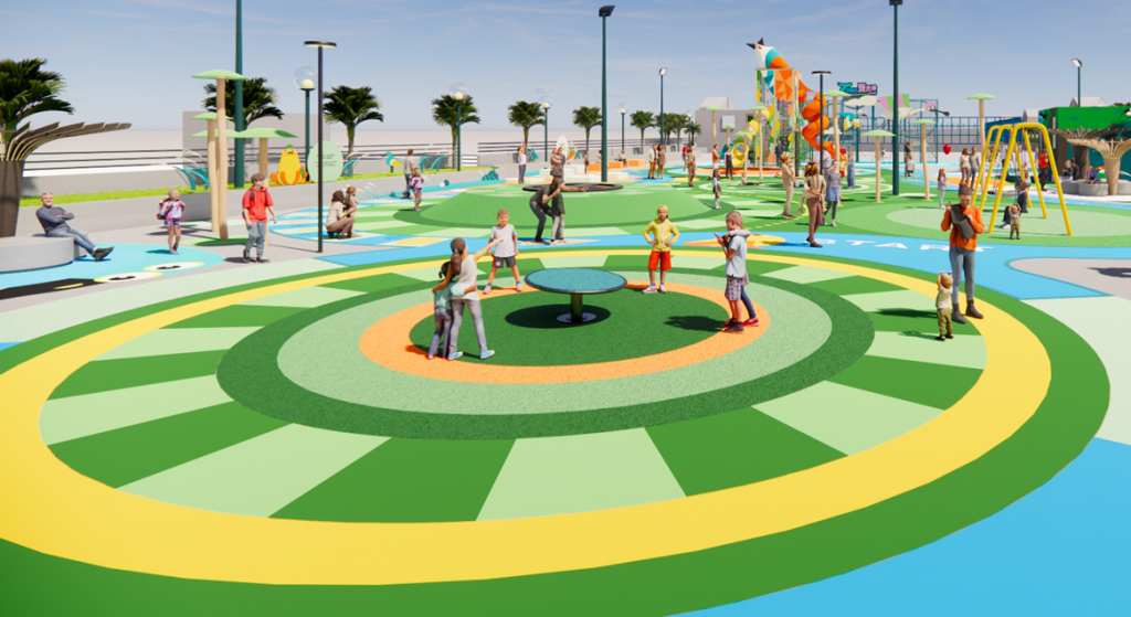 「Town玩天地」以天水圍濕地為主題,從遊樂設施及公園設計中,讓小朋友認識濕地棲身的鳥類。「Town玩天地」焦點項目包括高達五米的「BillBill歷險塔」,塔內有刺激而富挑選性的垂直攀爬架,並設有不同關卡,讓小朋友體驗於半空中攀爬所帶來的快感;而在設施上等候大家的BillBill,就是「濕地之星」黑臉琵鷺,以卡通化及繽紛色彩的形象呈現。