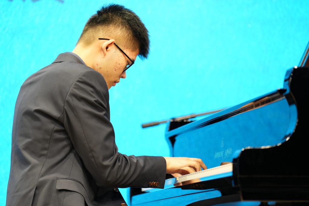 陳駕樺以青年鋼琴家身份演奏鋼琴,展現其音樂天賦。