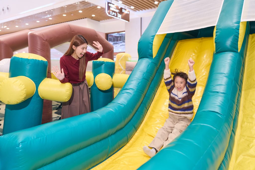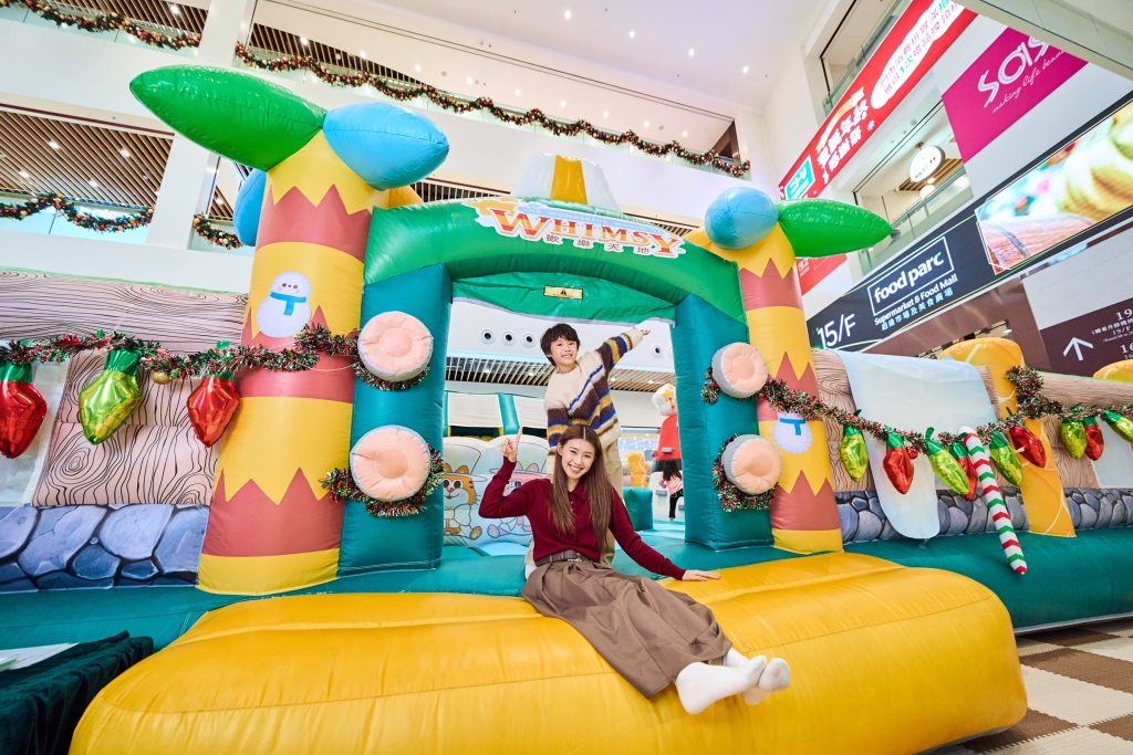 於商場三樓中庭的森林山谷舉行的「冬日飄雪嘉年華」,設有以歡樂天地吉祥物歡樂貓為主題的吹氣森林彈床。彈床分成三大部份,穿過由大樹組成的門口,迎面而來的是吹氣滑梯,有齊拖肥、小咪、機靈三隻古祥物坐陣。滑梯右邊是由穿上一身聖誕紅白裝束的拖肥變身而成的吹氣攀登架;最後一區是小咪與機靈隱藏其中的吹氣障礙賽。三大區域放電一流!