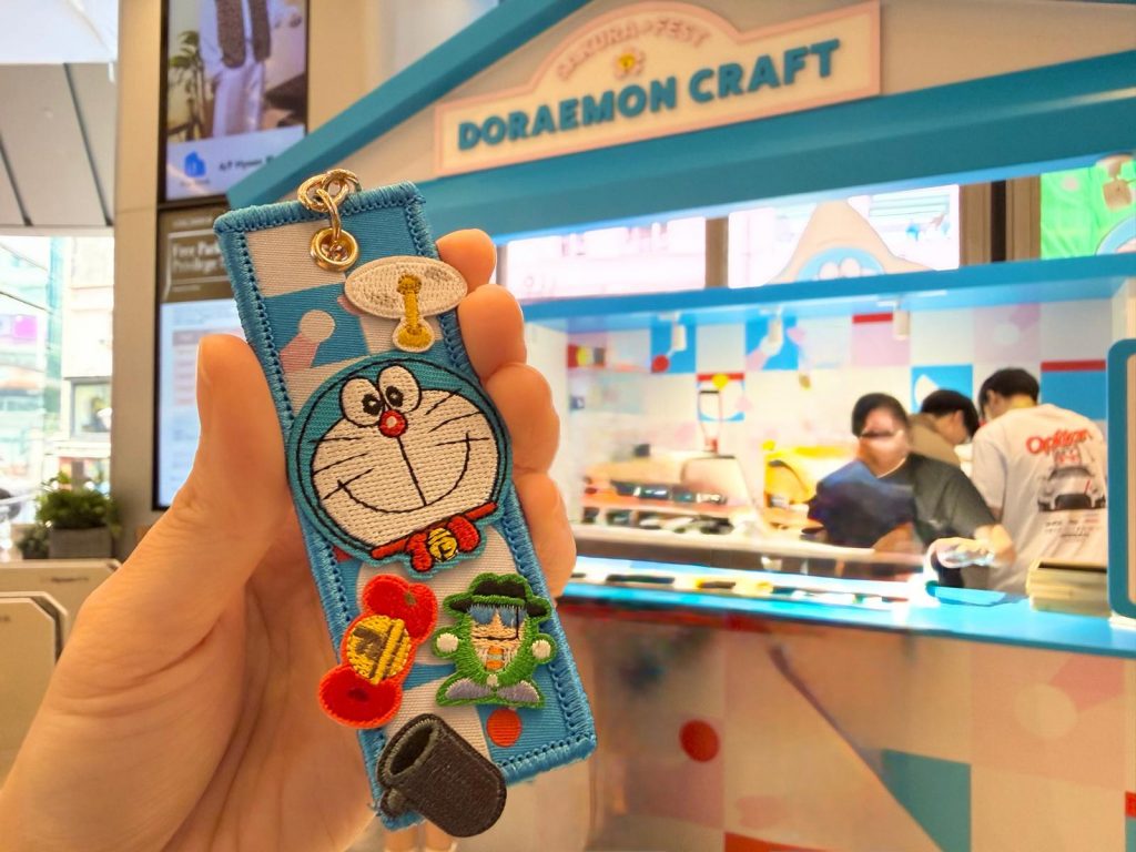 位於商場一樓的多啦A夢手作區,大排長龍的活動是製作個人專屬法寶吊牌。可根據個人喜好自由配搭多款多啦A夢法寶刺繡章、英文字母或數字章,即場燙印,製作你專屬的多啦A夢主題吊牌。刺繡章亦可買回家自行燙印在T恤或其他布品上。