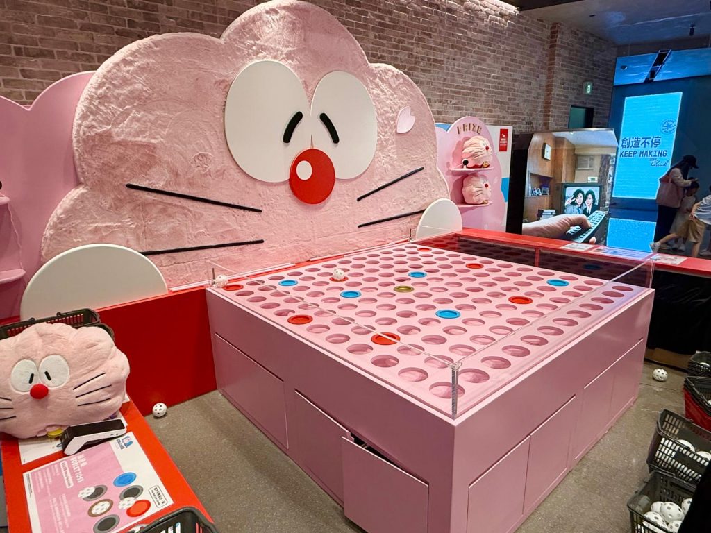 第二個遊戲是經典拋波,拋中藍色、紅色或金色的洞洞即可獲獎!獎品包括多啦A夢貼紙、鎖扣公仔,及大獎櫻花多啦A夢咕𠱸!港幣$50可參加遊戲一次。活動區內更設有巨大化的櫻花多啦A夢雕塑公仔可供打卡。