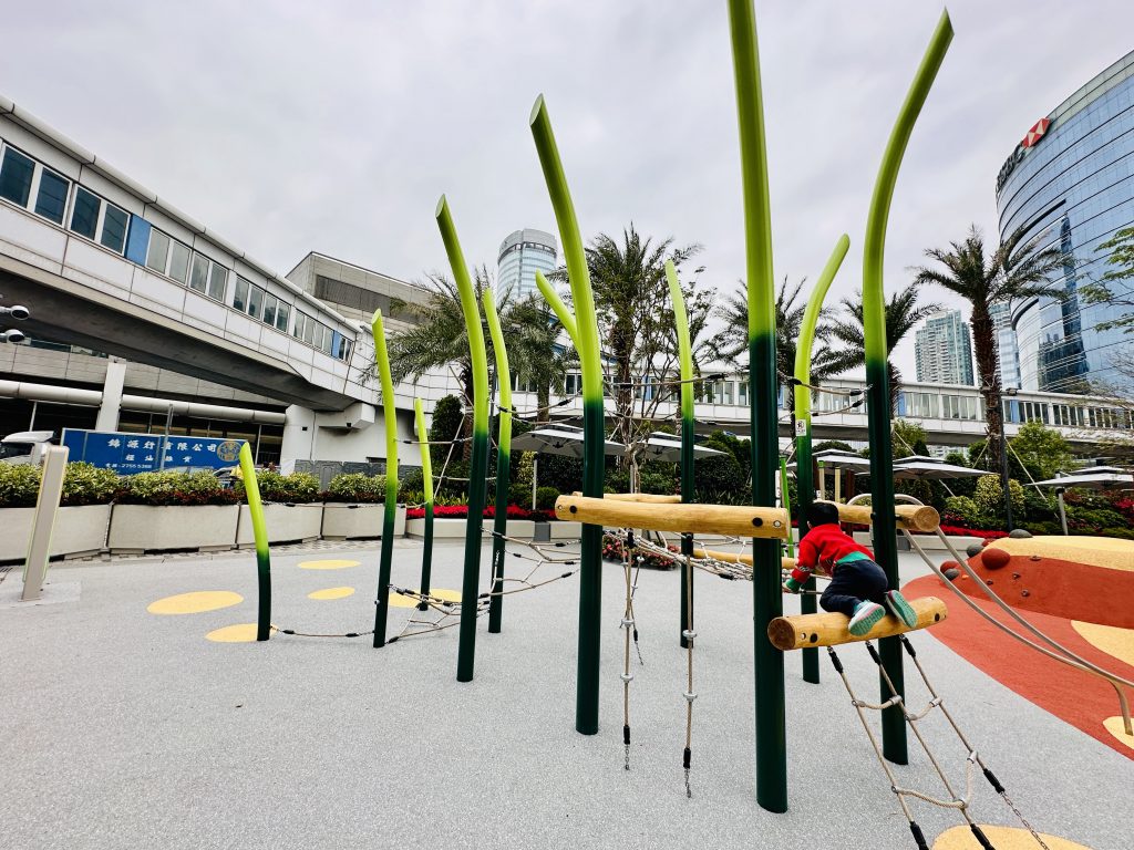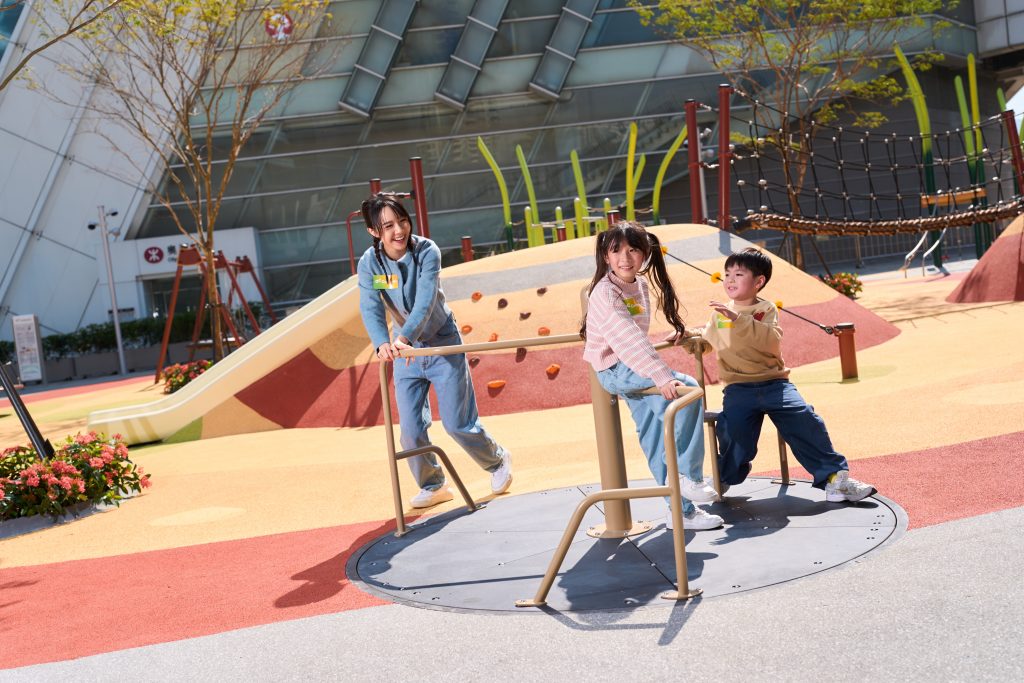 動感區內特別設置「共融氹氹轉」,採用與地面高度一致的地台設計,並設有輪椅空間,讓傷健人士可以一同享受設施,體現共融遊樂的理念。