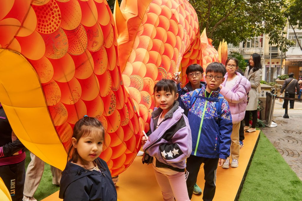 利東街更於中庭打造了一條金光閃耀、長達8米的巨龍裝置,巨龍身上象徵如意喜慶的祥雲圖案,是由香港表達藝術治療中心註冊藝術(表達藝術)治療師Mavis Wong帶領不同文化背景及國籍的公眾,透過藝術治療的方式,在巨龍裝置上運用點點藝術創作屬於自己的個人祝福圖案,寓意將希望及福氣帶給社區。