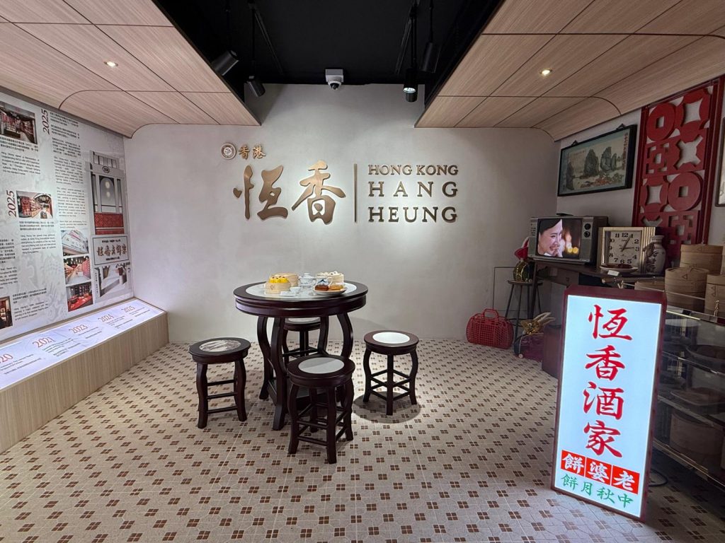恆香全新旗艦店樓高三層,地下是自設餅房、售賣新鮮出爐中式餅食及禮盒的零售店,二樓是「恆香唐餅文化館」,分為恆香月餅、恆香嫁囍禮餅、黃金老婆餅、元朗大馬路生活日常微型模型及復刻恆香酒家場景五大部分。月餅是恆香其中一款最具代表性的餅食,在恆香月餅展區中,便展出多件具歷史價值與文化意義的月餅相關展品,例如月餅模具、不同年代的月餅禮盒設計、月餅卡、月餅價目表及報章上的月餅廣告等,展品還包括1980年代的蟹爪菊花月餅鐵罐及1990年代的維港夜景月餅鐵罐,設計經典。文化館更特別以黃金鑄造了一個「黃金月餅」,於館內展出,代表香港餅食工藝的歷史記憶與精神價值,展現工藝之美。