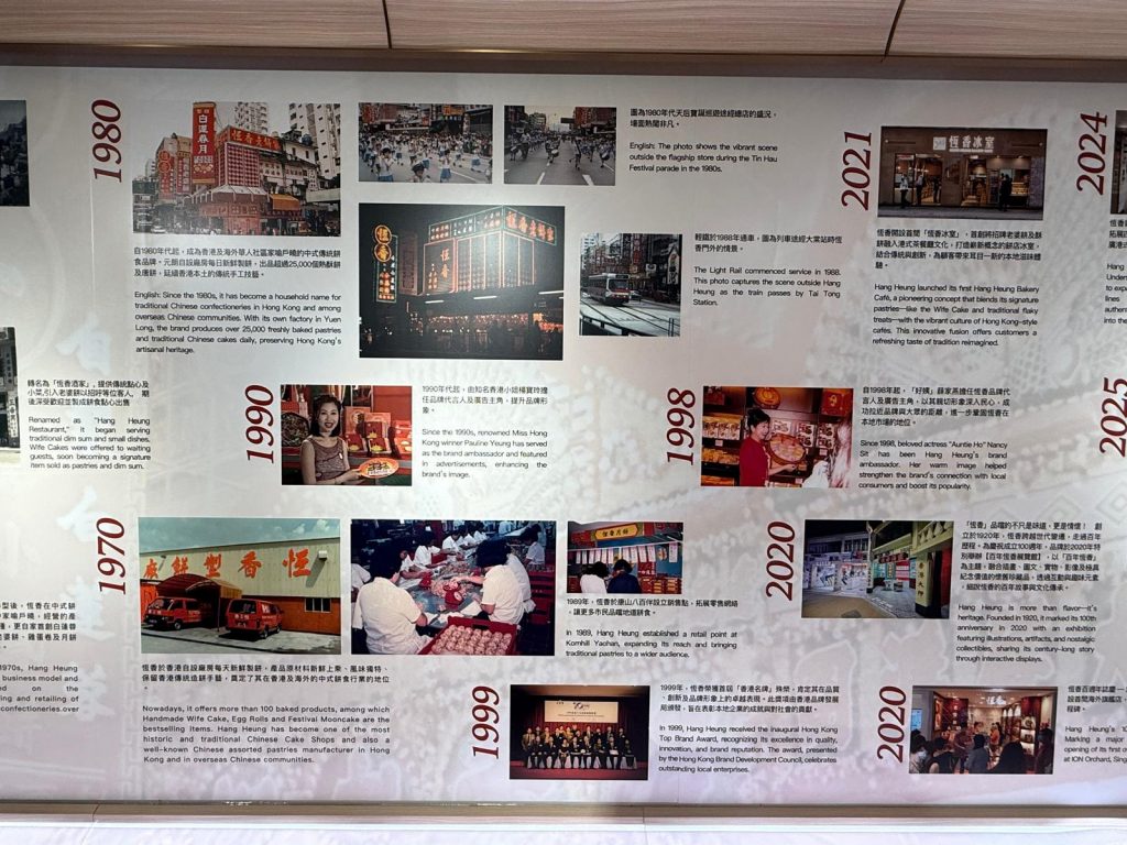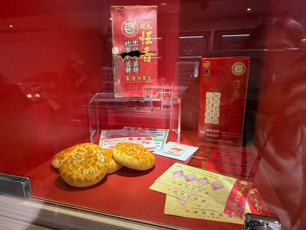 恆香老餅家有近百年傳統中式嫁囍禮餅製作經驗,展館當然不少得呈現這個部分的歷史。展區展出多款具時代特色的展品,包括$50嫁囍禮券及歷年恆香嫁囍餅卡,從六位數電話到八位編制,細膩記錄品牌傳承軌跡與香港的變遷。亦展出多款經典嫁囍禮餅,包括金裝龍鳳對餅、紅綾豆沙酥、黃綾豆蓉酥、正式雞蛋糕、合桃酥、純正白蓮蓉酥及蛋黃白蓮蓉酥等,展現中式婚嫁文化的豐富層次與恆香對工藝的細緻講究。