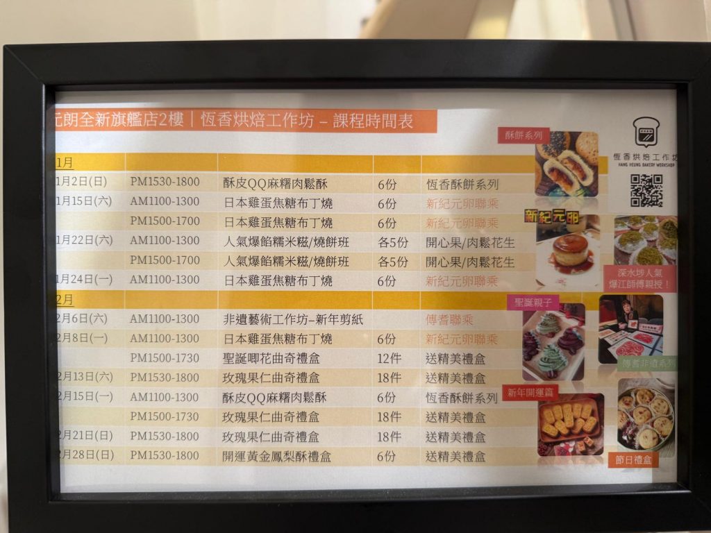 二樓的唐餅文化館毋需預約,烘焙工作坊則可以在網上報名參加。一般烘焙工作坊由兩至三個時不等,視乎所製作的餅食的步驟多少。部分工作坊提供早鳥優惠,一人可享七折、二人可享六五至六折。部分餅食烘焙需時,參加者可以趁焗製時間到下層參觀唐餅文化館,加上搜羅一番元朗大馬路的美食,輕輕鬆鬆便可自製一日好玩元朗親子遊。