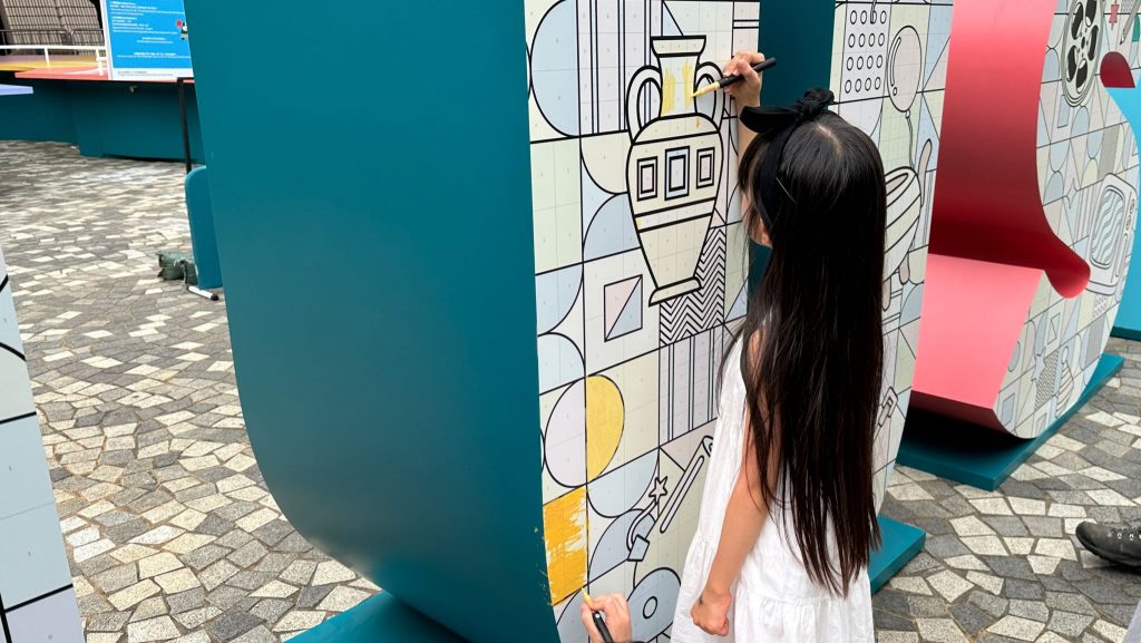 同場設有「一人一筆接龍大派對」集體創作活動,小朋友可用畫筆為「MUSEFEST」大型字母填上顏色,一起創作大型街頭畫,感受藝術的力量。
