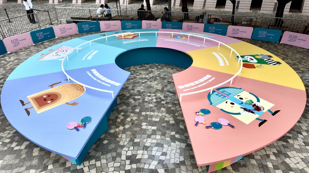 喜歡運動的家庭亦可參與「『乒』紛大對戰」及「旱地冰球總動員」,在印有博物館Q版角色的圓桌進行乒乓球競賽,或是挑戰變種冰球「旱地冰球」,運用球棒將球運送至指定地點,考驗自己的手眼協調能力。