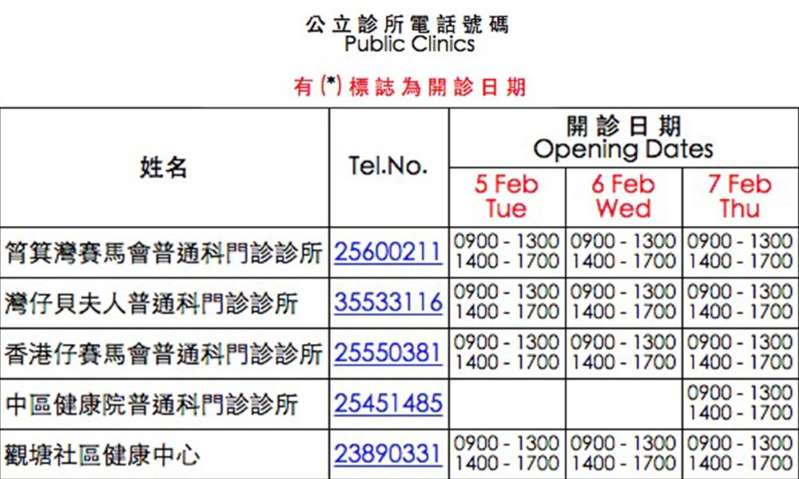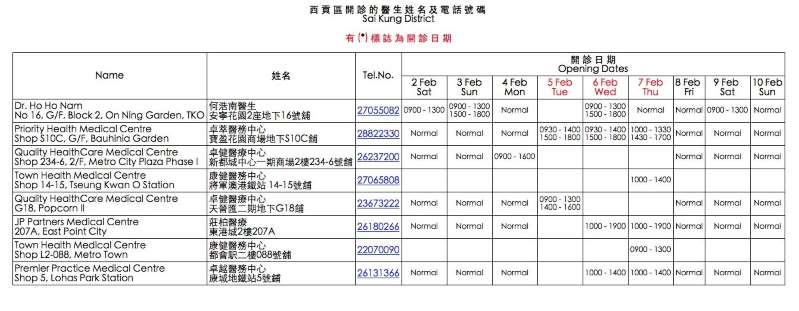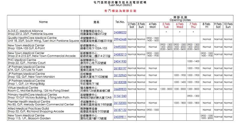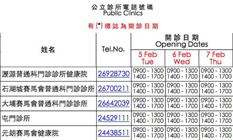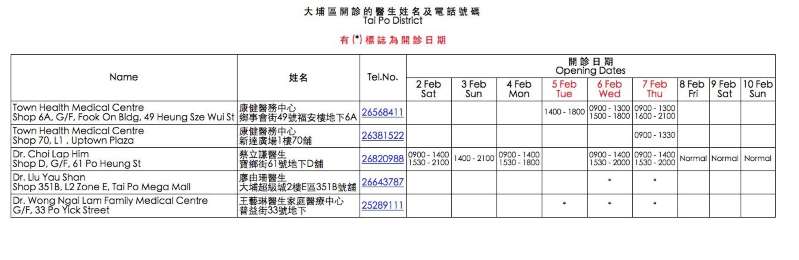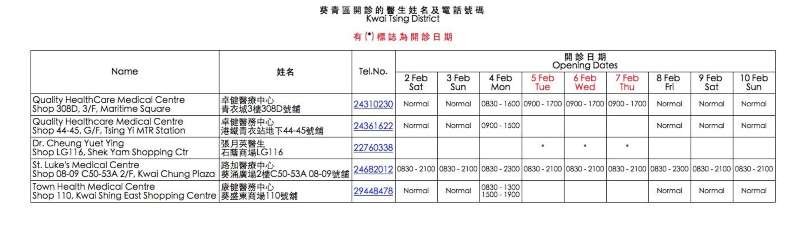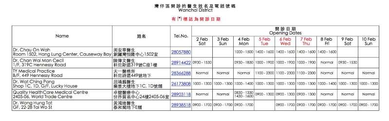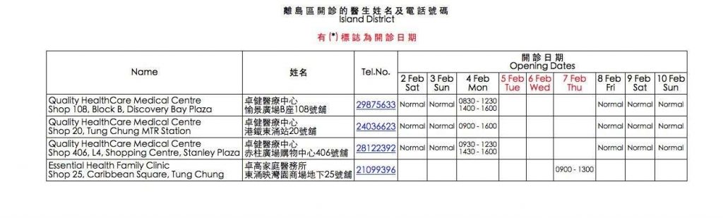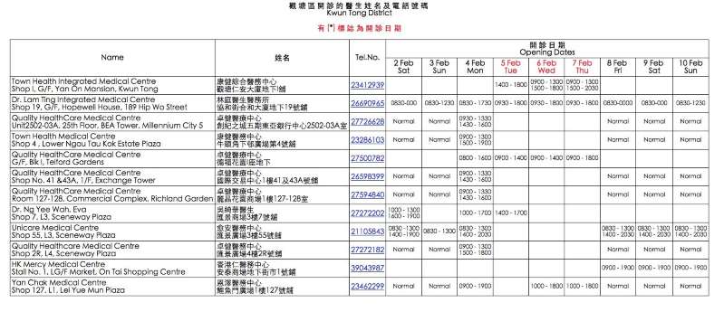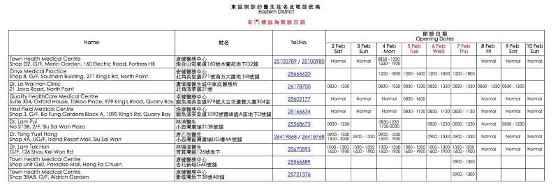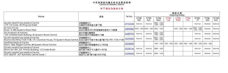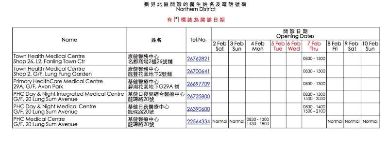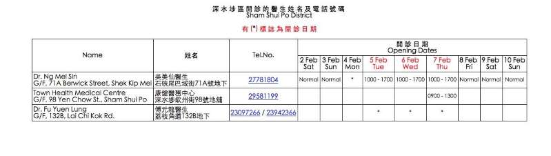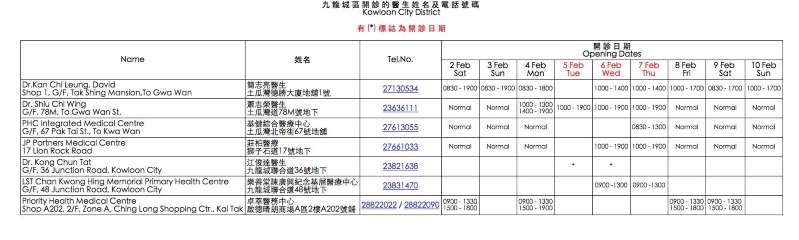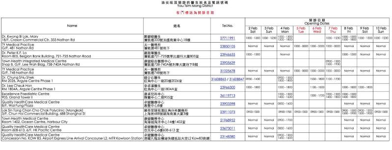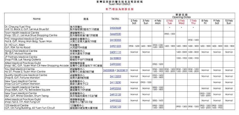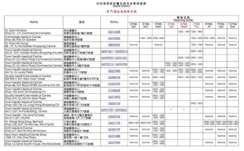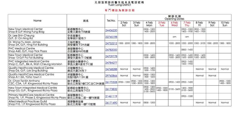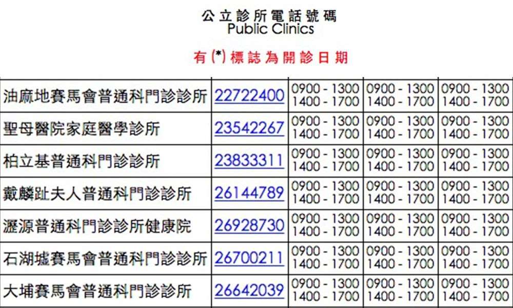 健康貼士 22/01/2020 0 【新年必備】年假期間正常營業診所名單 農曆新年將至,天氣時冷時熱,加上本港正受「武漢肺炎」威脅,同時又處於流感高峰期,如果在過年期間要找醫生,可能就會比平日困難了。因此,特地為各家長整理一份新年假期正常營業的診所名單,以備不時之需!公立診所 港島區中西區 東區 南區 離島區 灣仔 九龍區九龍城區 油尖旺區 深水埗區 黃大仙區 觀塘區 新界區大埔區 荃灣區 沙田區 葵青區 北區 元朗區 屯門區 西貢區 Share Article: 診所, 名單, 農曆新年