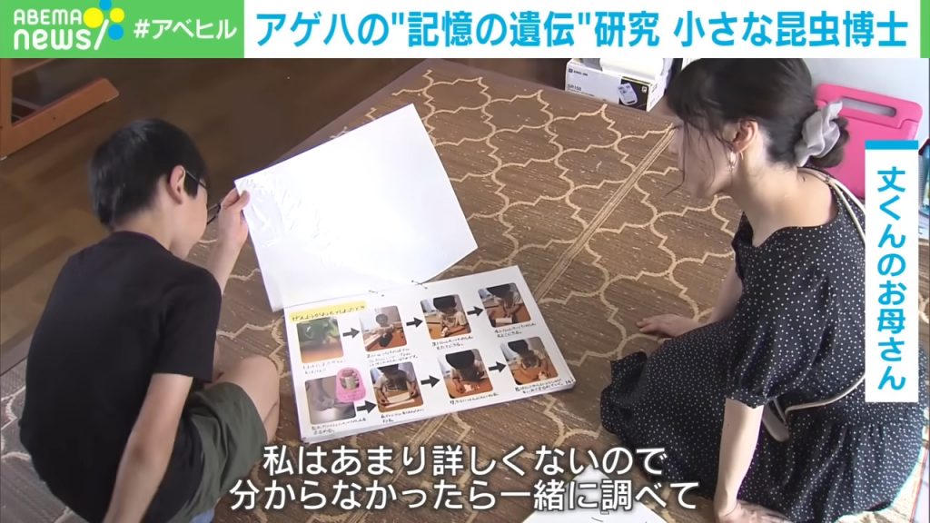 長井丈把他的研究成果製作成英文海報,媽媽則幫他把內容傳給美國的教授確認。媽媽坦言,由於自己不是昆蟲學專家,她能為兒子做的只是從旁給予協助和支持:「我會盡量讓他自己思考,比起直接幫他購買所需的物品,我會帶他去商店,讓他自行思考和計劃。如果他遇到想不通的地方時,我才會給予提示。」