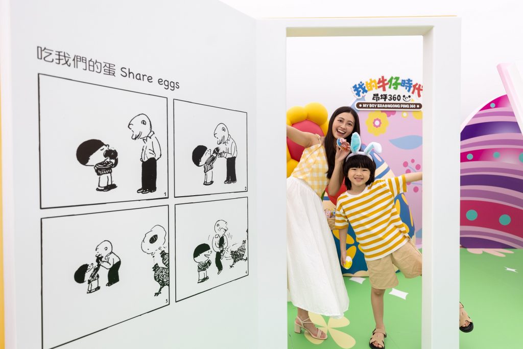 昂坪市集圓形廣場高逾兩米的「牛仔」復活節大型裝置,以色彩斑斕的創新元素為黑白四格畫注入新意,帶領大家走進《牛仔》漫畫世界!高舉着復活蛋的「契爺」率先從巨型《牛仔》漫畫書躍出,緊隨着的是提着一籃子復活蛋、戴着應節兔耳朵頭飾的「牛仔」與小狗。這個裝置延續了《牛仔》漫畫活潑跳脫、令人會心微笑的風格,為這個復活節添上簡單真摯的笑聲。