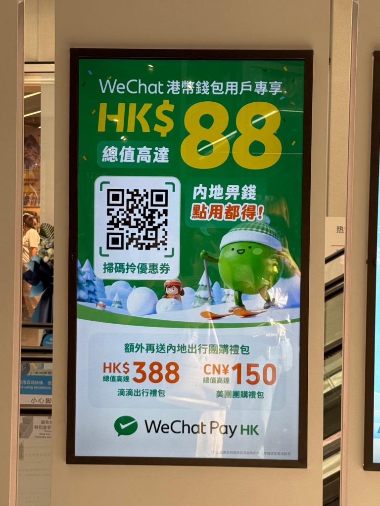 除了$1優惠,WeChat Pay HK用戶亦可掃碼領取總值超過港幣$600的獎賞,當中包括價值$88的 WeChat Pay HK通用電子現金券、價值人民幣150的美團團購優惠券及價值人民幣388的滴滴出行優惠券。