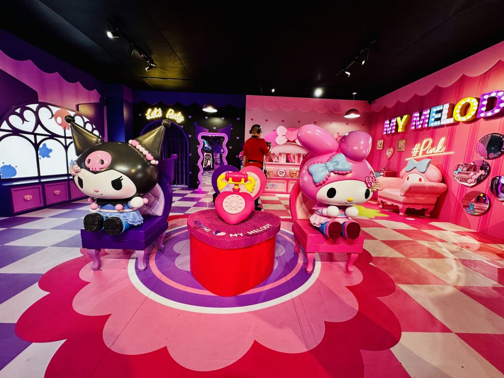 高峰樂園亦特別設置「My Melody & Kuromi 派對屋」,慶祝My Melody出道50周年及Kuromi出道20周年。派對屋以Y2K風格打造,分別以兩位角色的經典配色:粉色與紫色作為主調,設有梳妝檯、角色造型沙發及特色牆面佈置,讓粉絲可於「扮靚」區拍攝專屬造型照,留下難忘回憶。