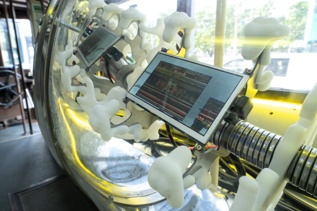 電車之旅由屈地街電車廠啟程,參加者將率先來到電車上層,走進一個以2066年為背景的未來場景。藝術家想像未來將由AI電車全面取代傳統交通,並擁有自我意識和思考的能力。因此,車廂內的佈置融入電腦裝置與模擬人工智能的巨型脊柱設計,營造出強烈的未來氛圍。