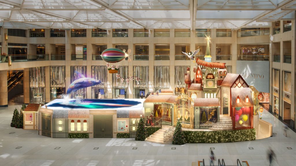 市民可從聖誕天地出發,漫步於醉人的金光璀璨燈海中,抵達置地廣場中庭,欣賞大型聖誕互動裝置「Noëlia at LANDMARK」, 感受冬日浪漫。