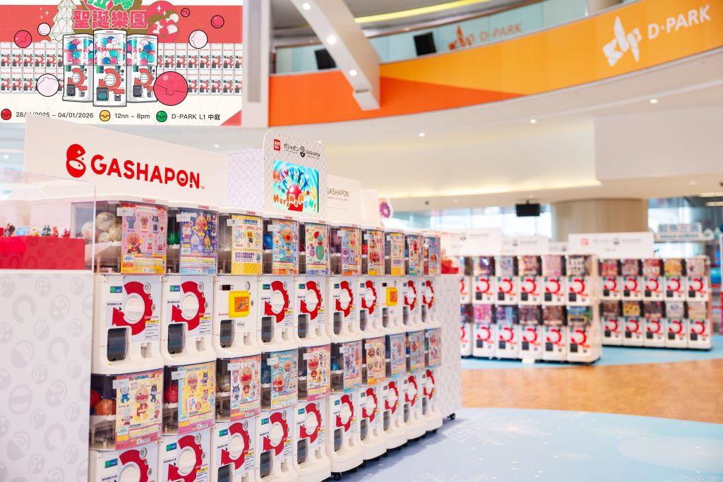 今年聖誕,D‧PARK首度與日本知名玩具品牌Bandai Gashapon合作,由即日起至2026年1月4日舉辦大中華區首個大型扭蛋主題展覽——「『扭』轉聖誕樂園」。場內的1000部扭蛋機,雲集逾900多款人氣動漫及卡通品牌扭蛋,還有八米高的幻彩聖誕樹,亦設互動遊樂區及趣味工作坊,為一家大小帶來沉浸式的節日體驗。