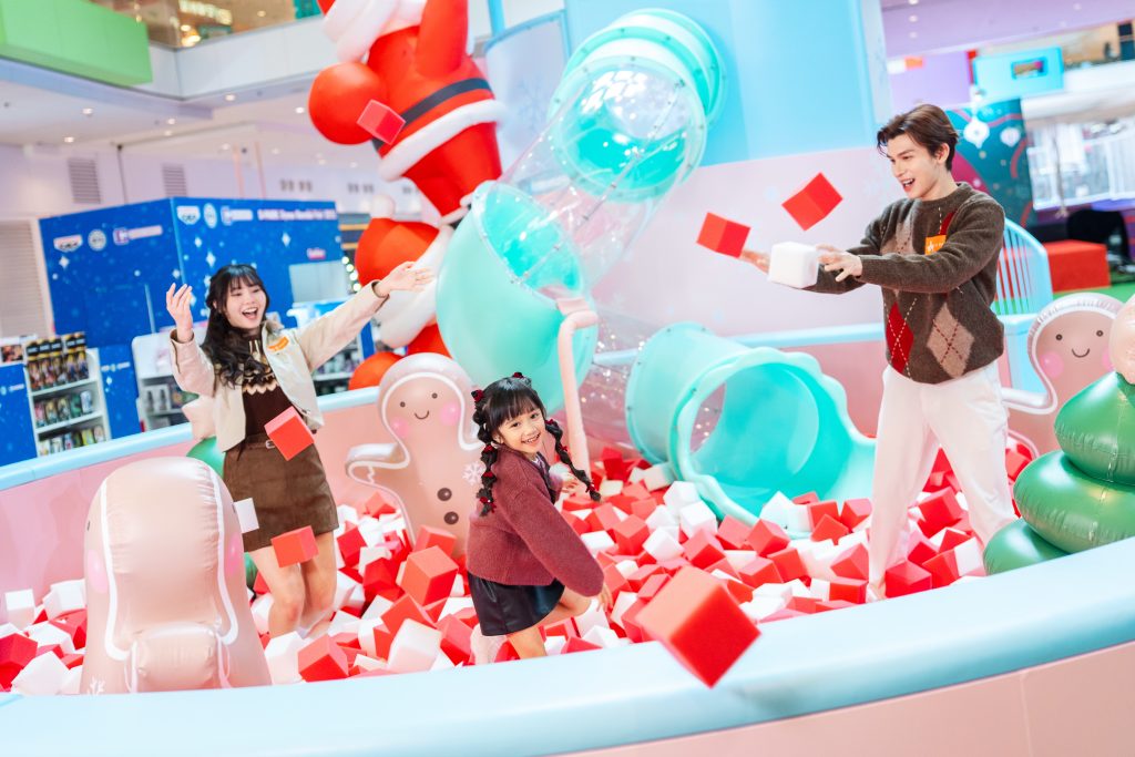 室內草地則帶來兩大互動遊樂區:「聖誕滑梯尋寶樂」和五米高的巨型夾公仔機。如心賞會員只需憑一張扭蛋卷,即可於 App 中領取遊戲券,小朋友便可在「聖誕滑梯尋寶樂」暢玩10分鐘,從聖誕滑梯一滑而下,投入柔軟的聖誕波波池,盡情放電;巨型夾公仔機同樣只需以一張扭蛋紙在App中領取遊戲券,即可走進公仔機內拍攝趣怪打卡相。