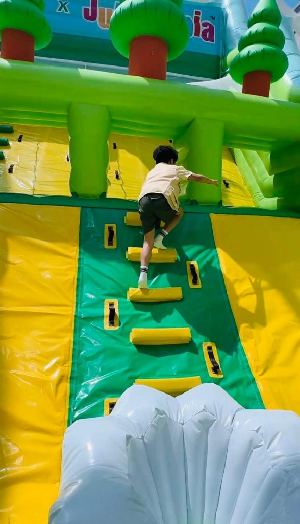 第二關「雲端攻頂戰」則讓一眾探險隊員挑戰登上Jumptopia史上最高、高達9米的垂直「神聖大山」。小朋友將會攀爬、擺盪來跨越起伏的山巒,還要應付強風特效,挑戰小朋友的身手和平衡力!