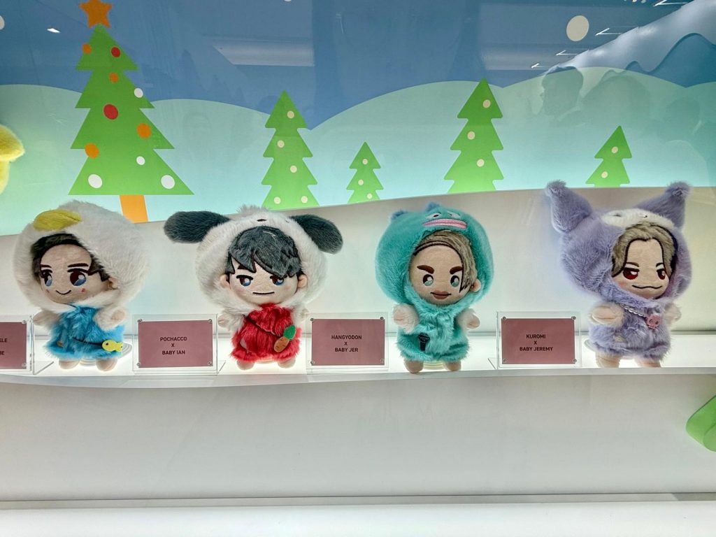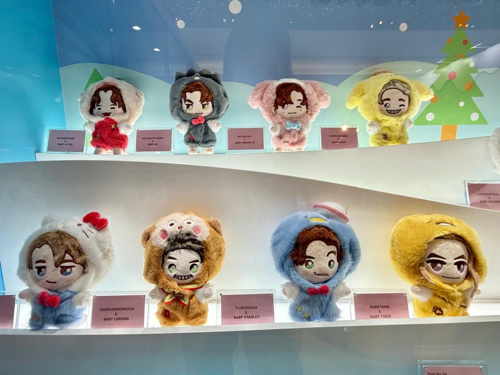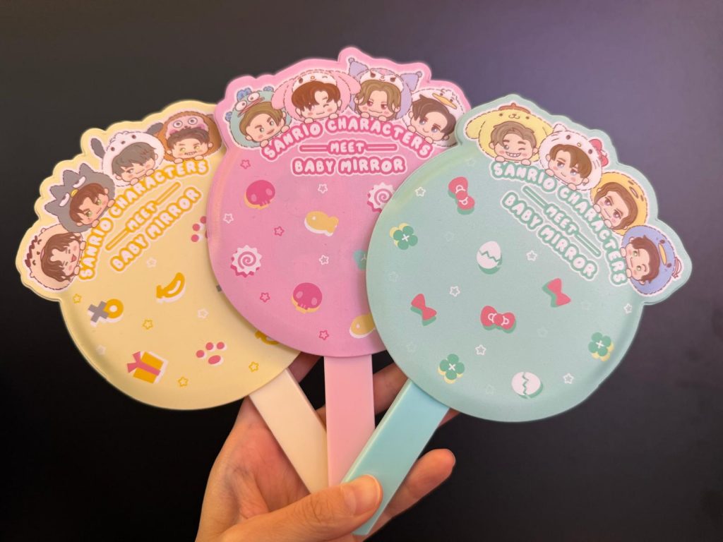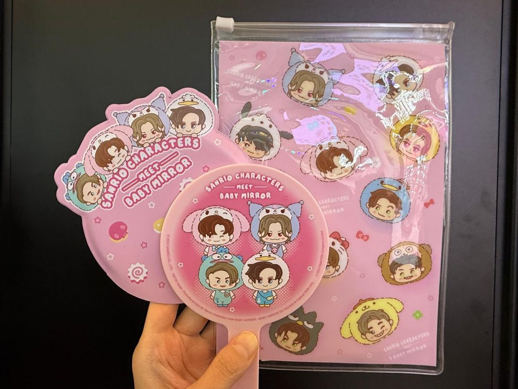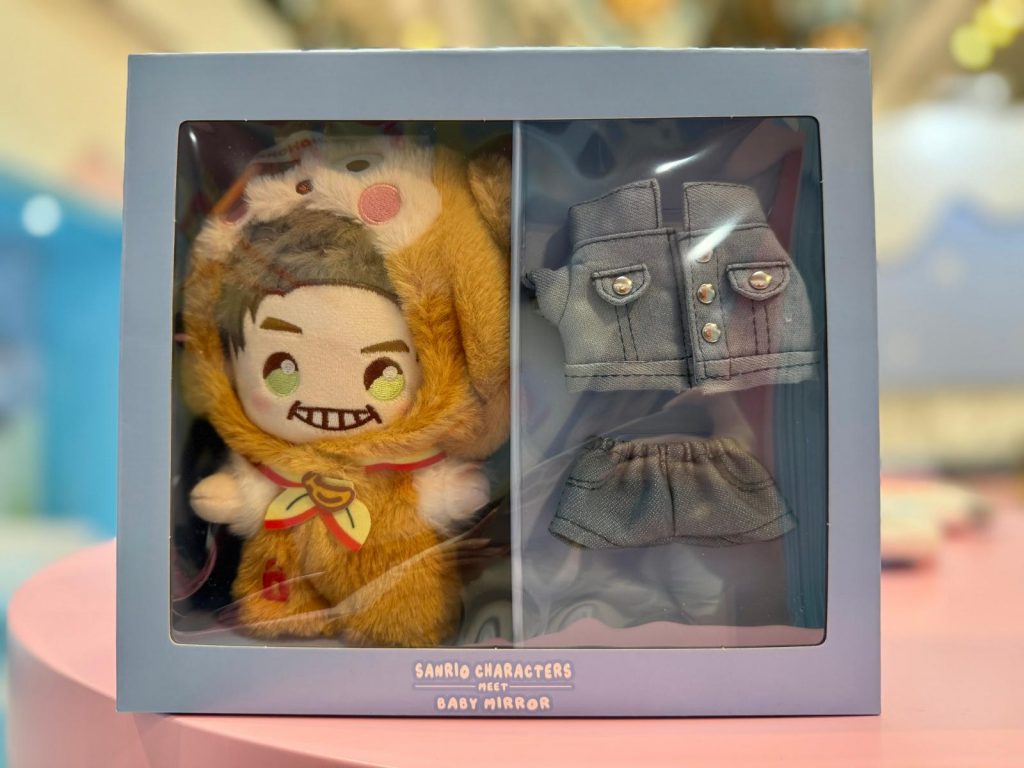 由11月25日起,場內的《SANRIO CHARACTERS MEET BABY MIRROR》期間限定店將會發售多款限定聯乘產品包括:毛公仔套裝、毛毛卡套、棒球褸、收藏卡包,以及演唱會限定的產品。粉絲必買的聯乘毛公仔套裝,每款除了有BABY MIRROR穿上SANRIO角色的造型外,套裝會額外配一套牛仔造型可以替換。