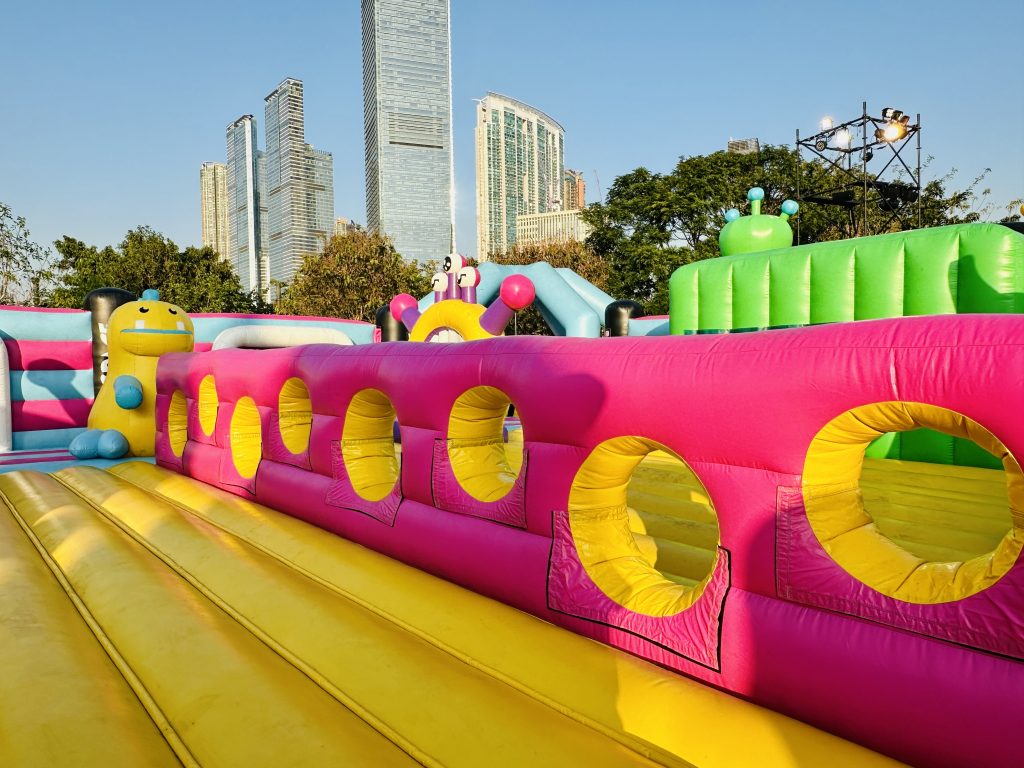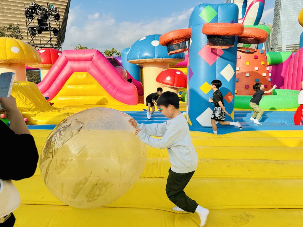 四大遊樂區之中,最為矚目的莫過於這座佔地超過16,000平方呎、頂峰高達12米,並獲健力士世界紀錄官方認證的全球最大充氣城堡。城堡內空間極為寬敞,為小朋友提供充足的走跳與彈跳空間,同時設有巨型滑梯、攀爬塔及籃球架等多元設施,亦加入透明充氣球,讓孩子發揮創意,自由探索和玩耍。