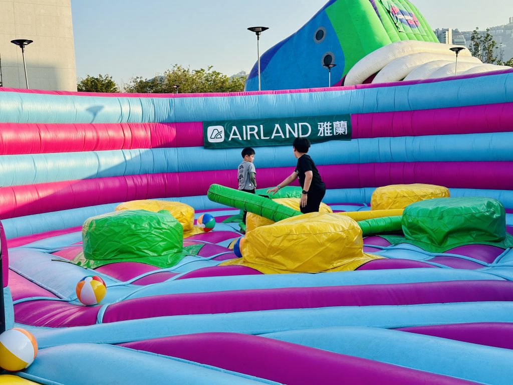同時,場內特設四個主題充氣打卡區,包括頒獎台及超長梳化等裝置,適合一家大小或朋友合照留念。