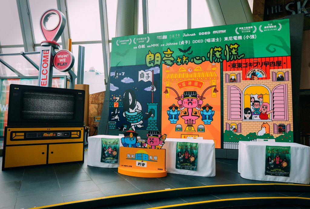 除了四樓的KUROMI怪異影院,朗豪坊亦聯同白紙市集及多位插畫家,呈獻《朗豪坊心慌慌》市集,打造了三大打卡及互動位,包括重現經典驚慄電影「長髮女鬼由電視爬出來」的「凶鈴大電視」、只要於大電視插入復古錄影帶,即可與三位插畫家TonyElectronic東尼電機、DDED及Johnee Lau近距離互動!他們分別化身長髮女鬼、喵道士或是比鬼更可怕的「懷孕小強」令人「驚心動魄」造型登場,更會上演《午夜Drawing》環節即席揮毫親身為粉絲畫名作法!另外還有吊靴鬼古井打卡位,及心慌慌回魂快閃館,以限定版主題相框拍攝人生三格,製作個人化專屬迷你凶鈴電視機。